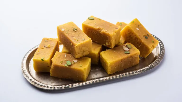 Pro tip: Whether you’re getting Mysore pak for puja bhog or as a gift, ensure the mithai is freshly prepared. You can check the freshness by the aroma of the ghee.
