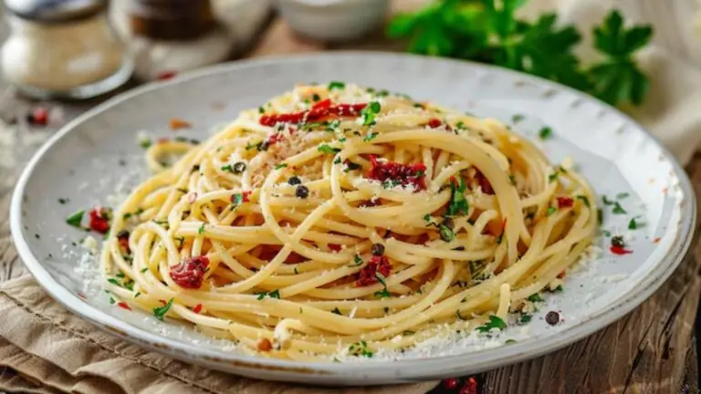 This Italian classic uses just spaghetti, garlic, olive oil, red chilli flakes, and herbs—but the trick is balance. Finish with lemon zest and grated cheese for an elevated take. Toss in spinach, mushrooms or cherry tomatoes if you’re feeling fancy. It’s a go-to for those days when chopping onions feels like a chore.