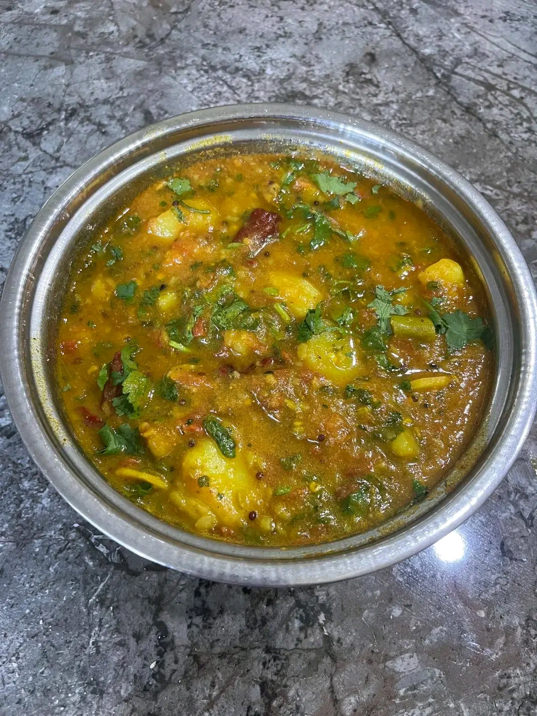 A South Indian lentil-based stew made with drumsticks (moringa pods),...