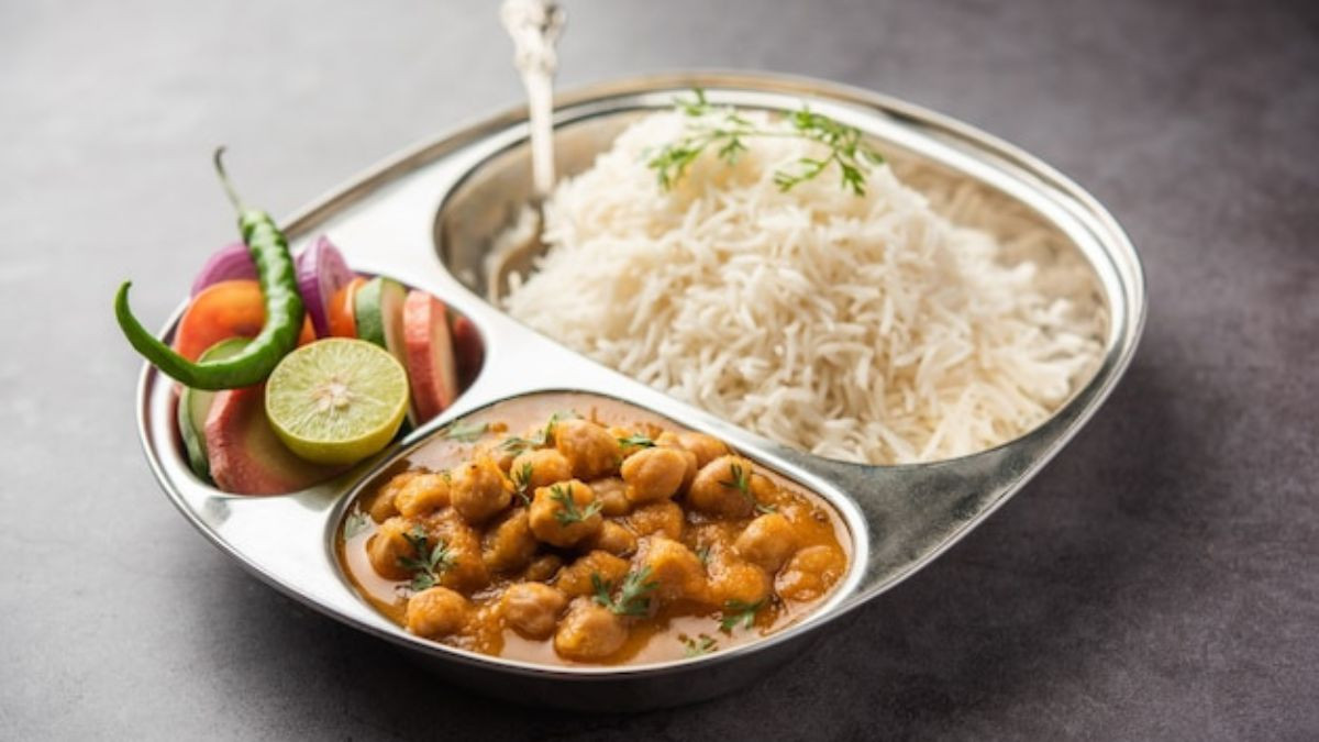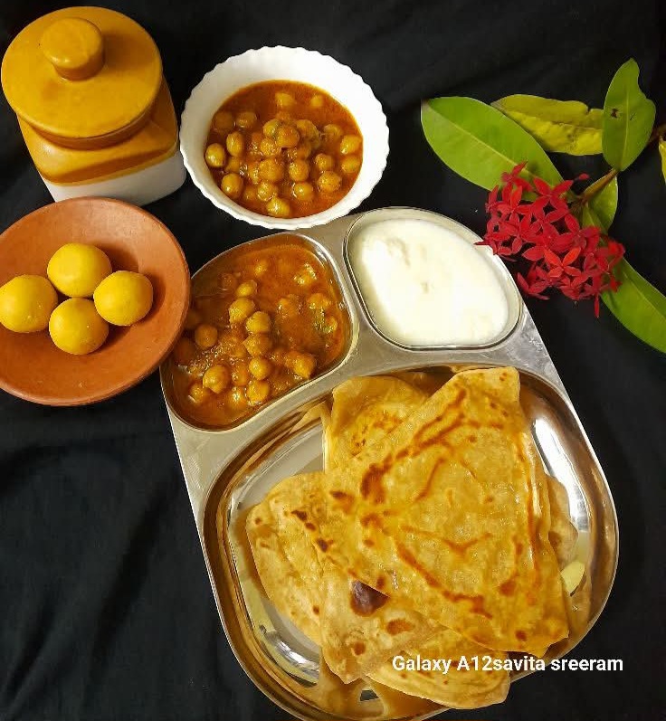 Protein-rich chickpea curry simmered in tomato-onion gravy, served with whole...