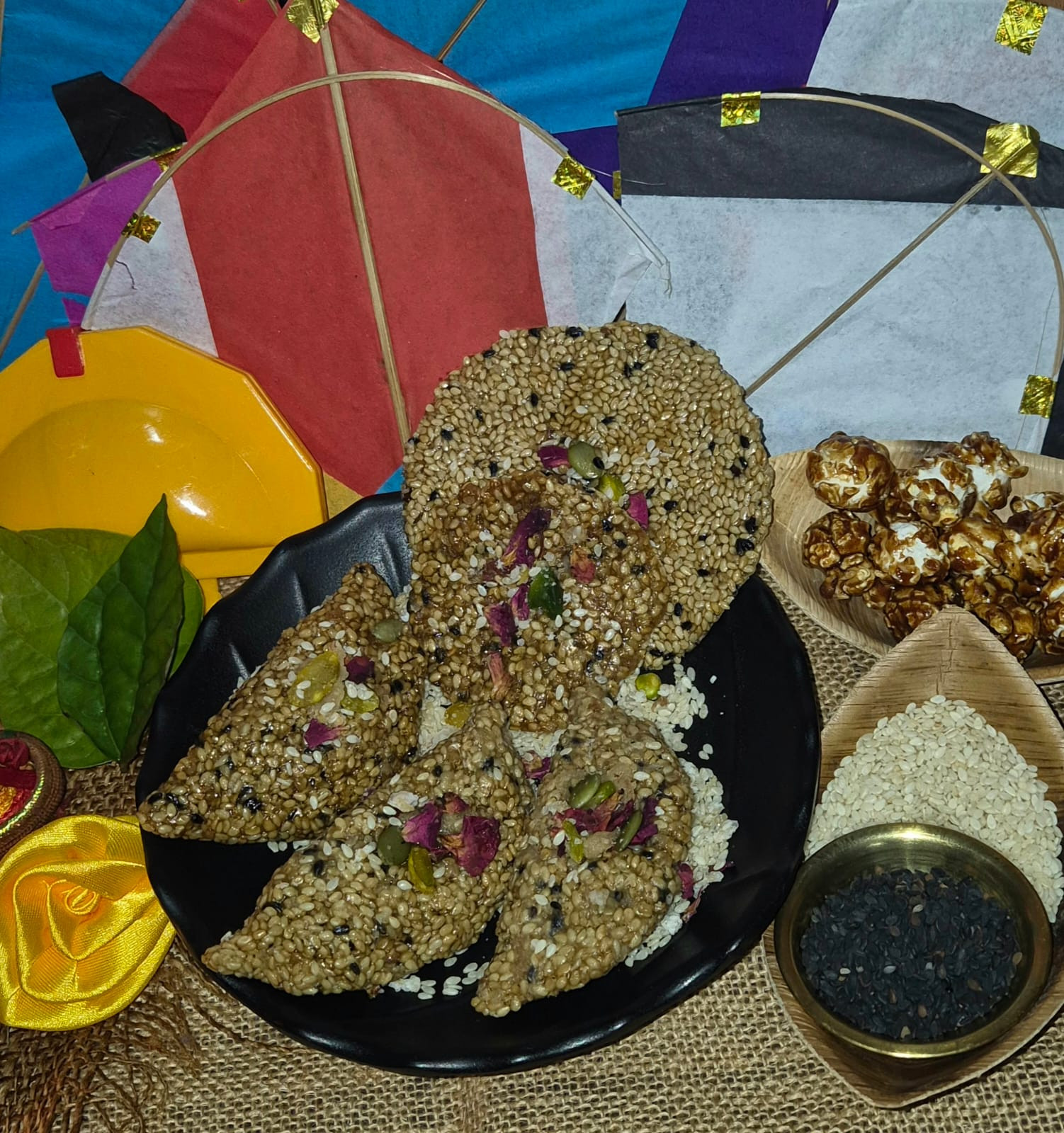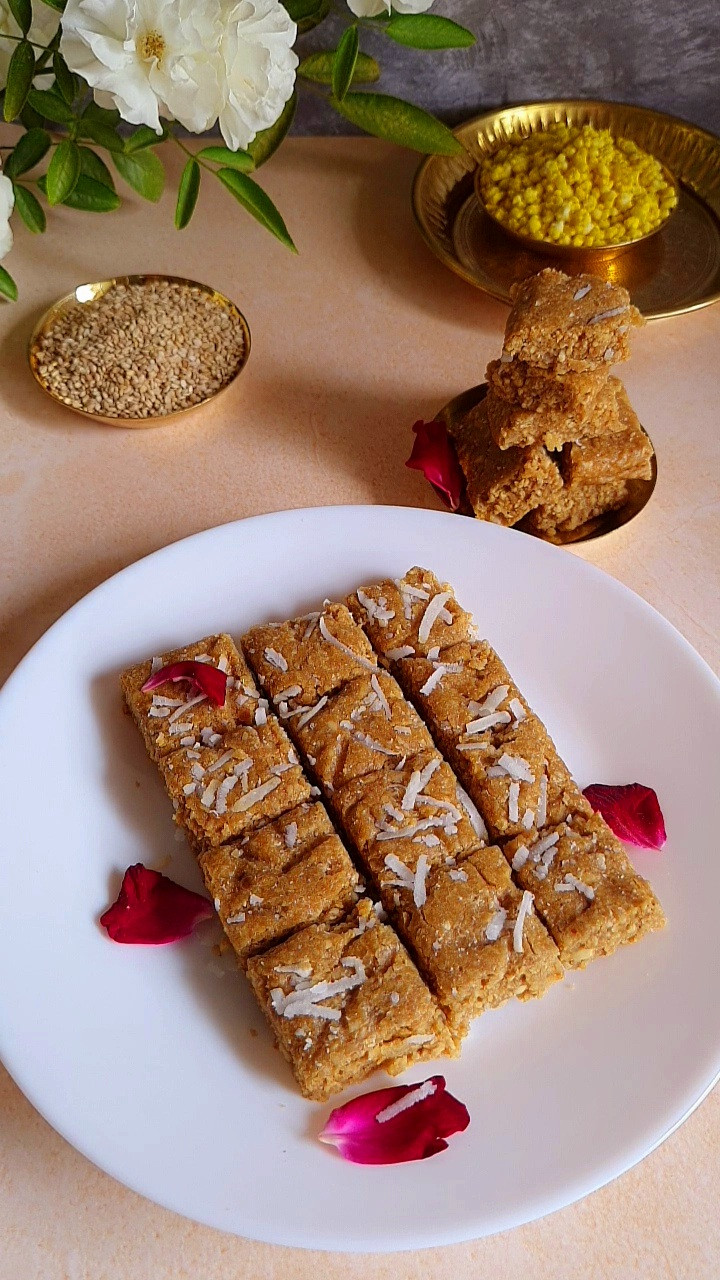 A traditional Indian sweet made with sesame seeds (til) and...