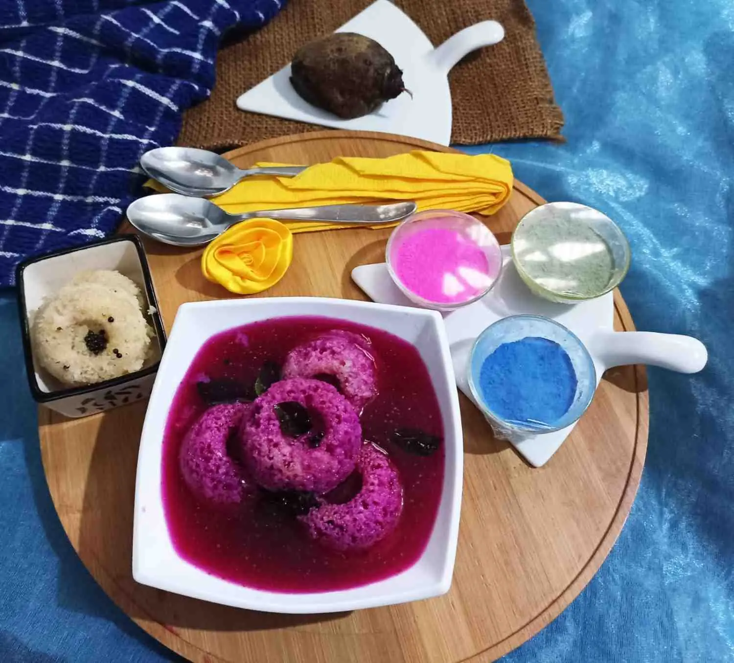 Steamed Semolina (Sooji) Vada in Beetroot