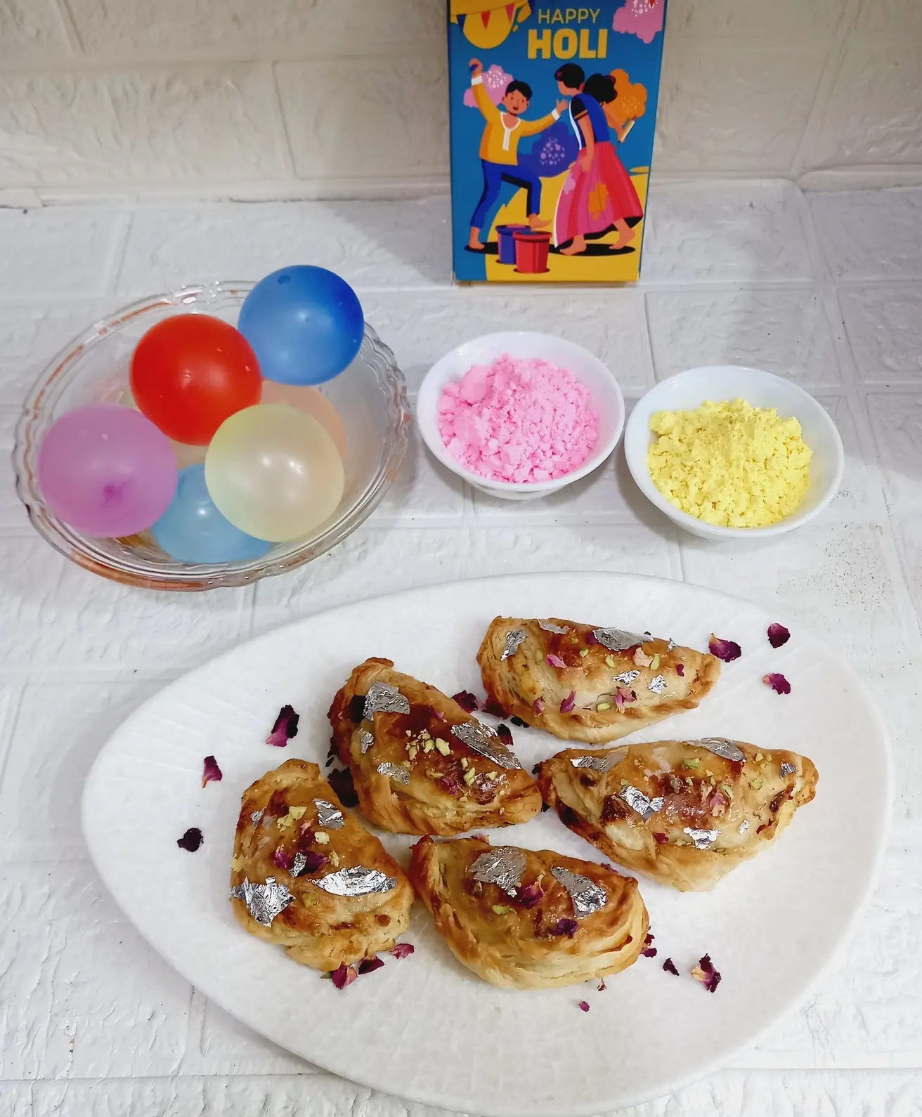 #Holi26 A popular traditional sweet, particularly known in Kolkata. A harmonious blend of a crunchy, less-sweet outer layer and a creamy, intensely sweet interior. A twist on the classic Kheere Chop! Crispy bread slices filled with a creamy khoya-based kheer’s filling, shaped into bite-sized chops. No these chops are a delightful fusion dessert. Perfect for Holi celebrations!