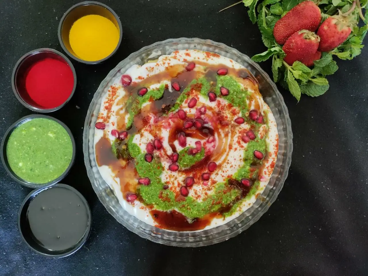 Beat the thick curd and place the vadas in a serving bowl and pour the curd all over the vadas. Sprinkle red chilly powder, black salt, roasted cumin seeds and garnish with sweet tamarind chutney and green coriander chutney