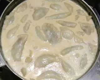 Cook on low heat until the pulis are soft and the milk thickens slightly.