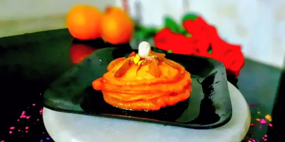Orange Malpua is a unique festive dessert made with freshly squeezed orange juice mixed into the batter for a refreshing citrus flavor. These soft, golden Malpua are soaked in fragrant saffron, cardamom, and kevda-infused sugar syrup, making every bite rich, aromatic, and perfect for Holi celebrations
