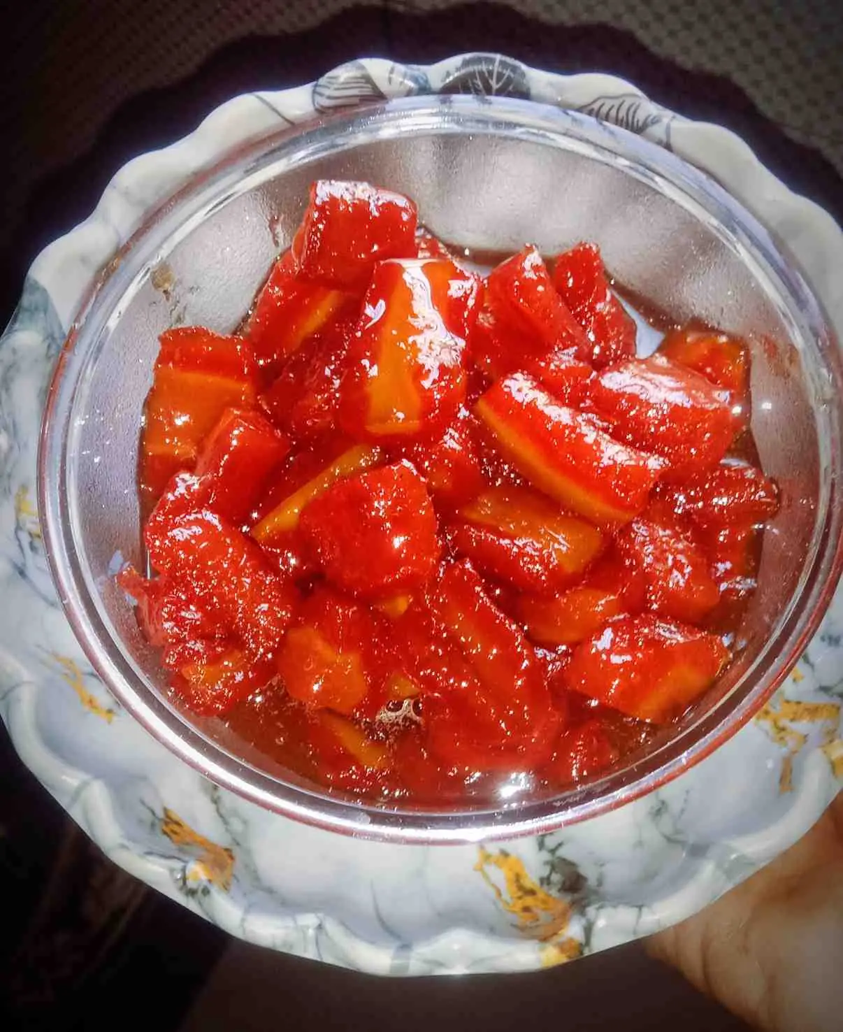 Now jaggery murabba is ready. It is very healthy and tasty. Jaggery murabba is very beneficial for cold and carrot is also good for health.