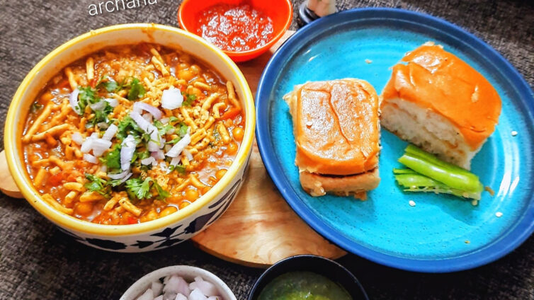 Serving ke liye ek bowl. Mai misal le uspar mixture namkeen add kare chopped pyaj lemon se garnish karke serve kare