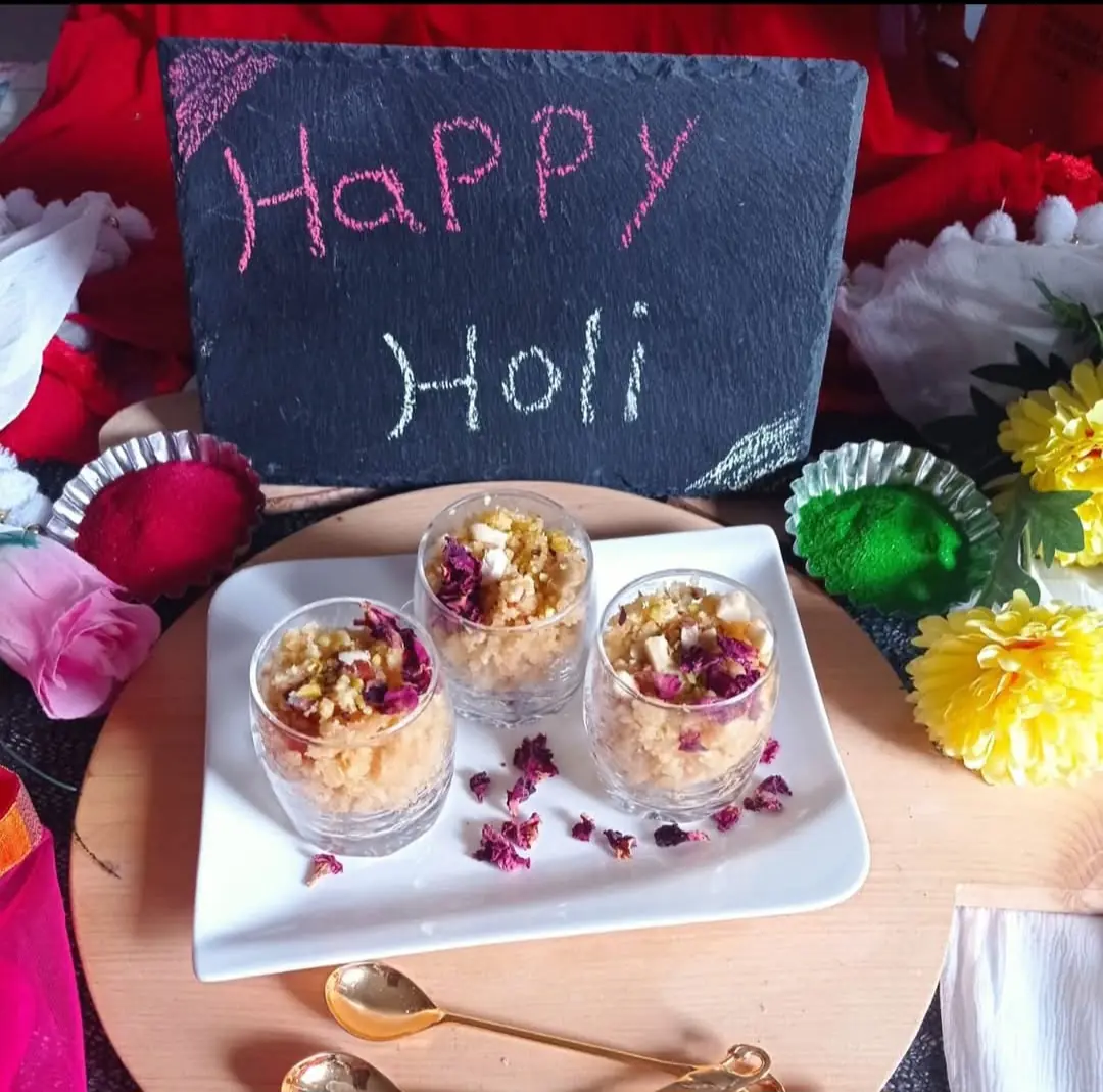 #holi26 Sheera or halwa is traditional Indian sweet. Rava sheera/suji halwa is one of the sheera/halwa which is often prepared in my kitchen. Apart from the classic rava sheera, I have tried variations in flavours in this sheera. Today, I have prepared Paan sheera for Holi festival. This twist in the classic sheera turned out so good and in result an aromatic and delectable sheera is here. People who loves paan, will definitely love this sheera.