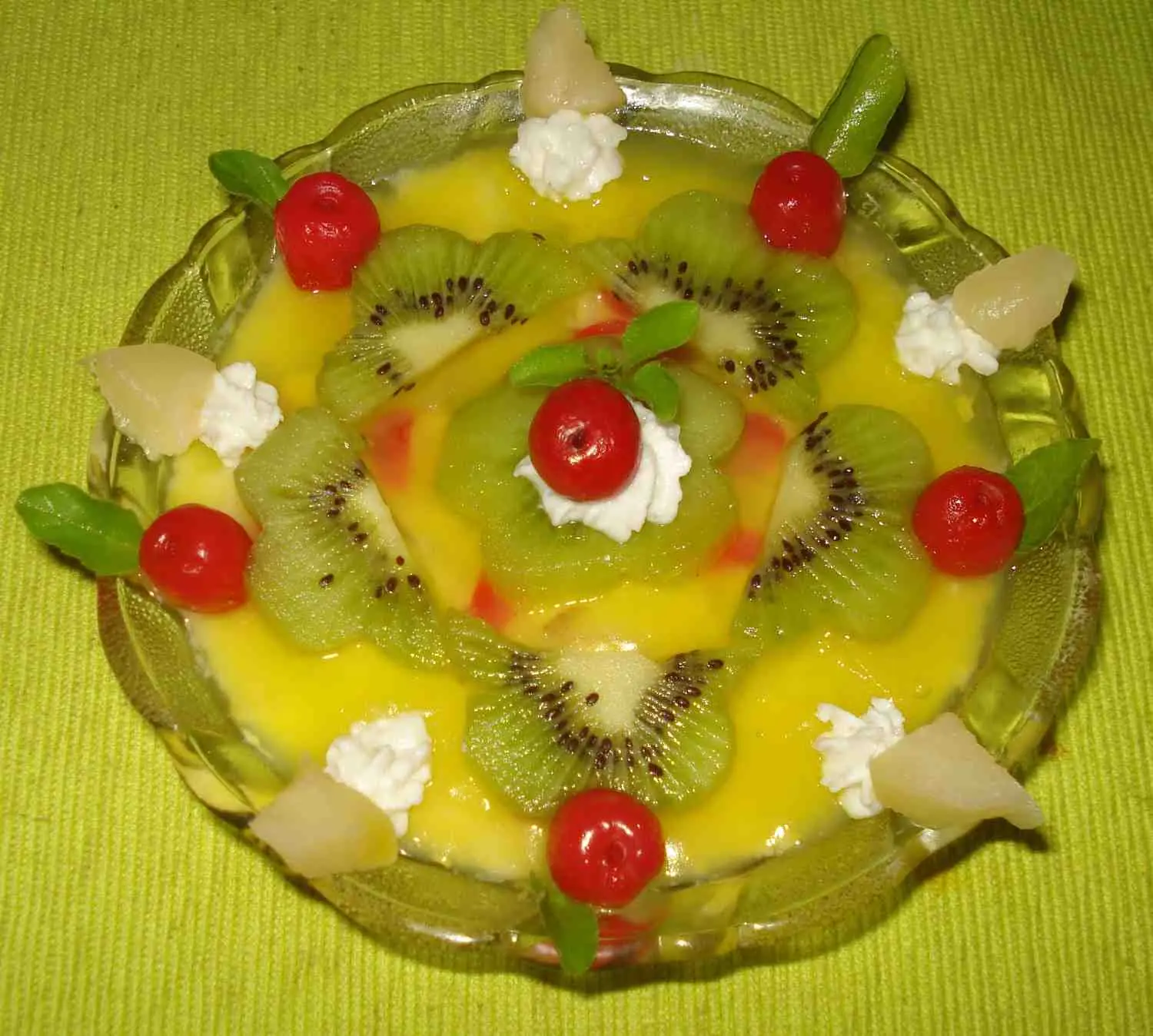 Decorate (The Rangoli): * Place a cherry on a dollop of cream in the exact center.